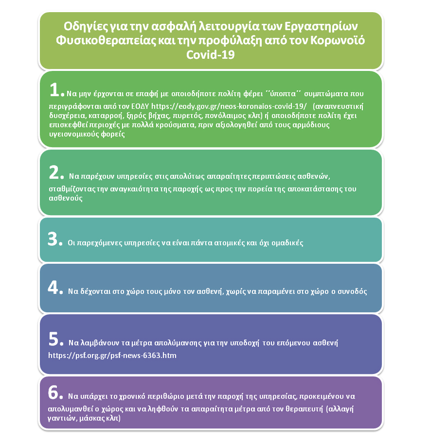 Οδηγίες για την ασφαλή λειτουργία των Εργαστηρίων Φυσικοθεραπείας και την προφύλαξη από τον Κορωνοϊό Covid-19